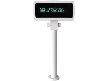 突出功能: ※ 具有可根据实际需求自定义长短的通讯线,避免多余的冗线破坏美观。 ※ 可在没USB口之旧PC状态时改由选购件5V USB供电器供电。 ※ 杆之长度可定制(500支以上订单)。 优秀功能: ※CD7X最多可显示40个字符(20列*2行),CD8X为128*24全点阵显示。字体大且清晰,方便阅读。 ※支持上下,左右面板调节,可达到最佳可视角度。 ※CD7X支持显示多国字库:美国、法国、德国、英国、丹麦Ⅰ、瑞典、意大利、西班牙、日本、挪威、丹麦Ⅱ、斯拉夫、俄罗斯。 ※支持4种协议:ESC/POS、DSP800、AEDEX、Firich。 ※支持波特率9600-115200。 ※支持客户自定义字符。