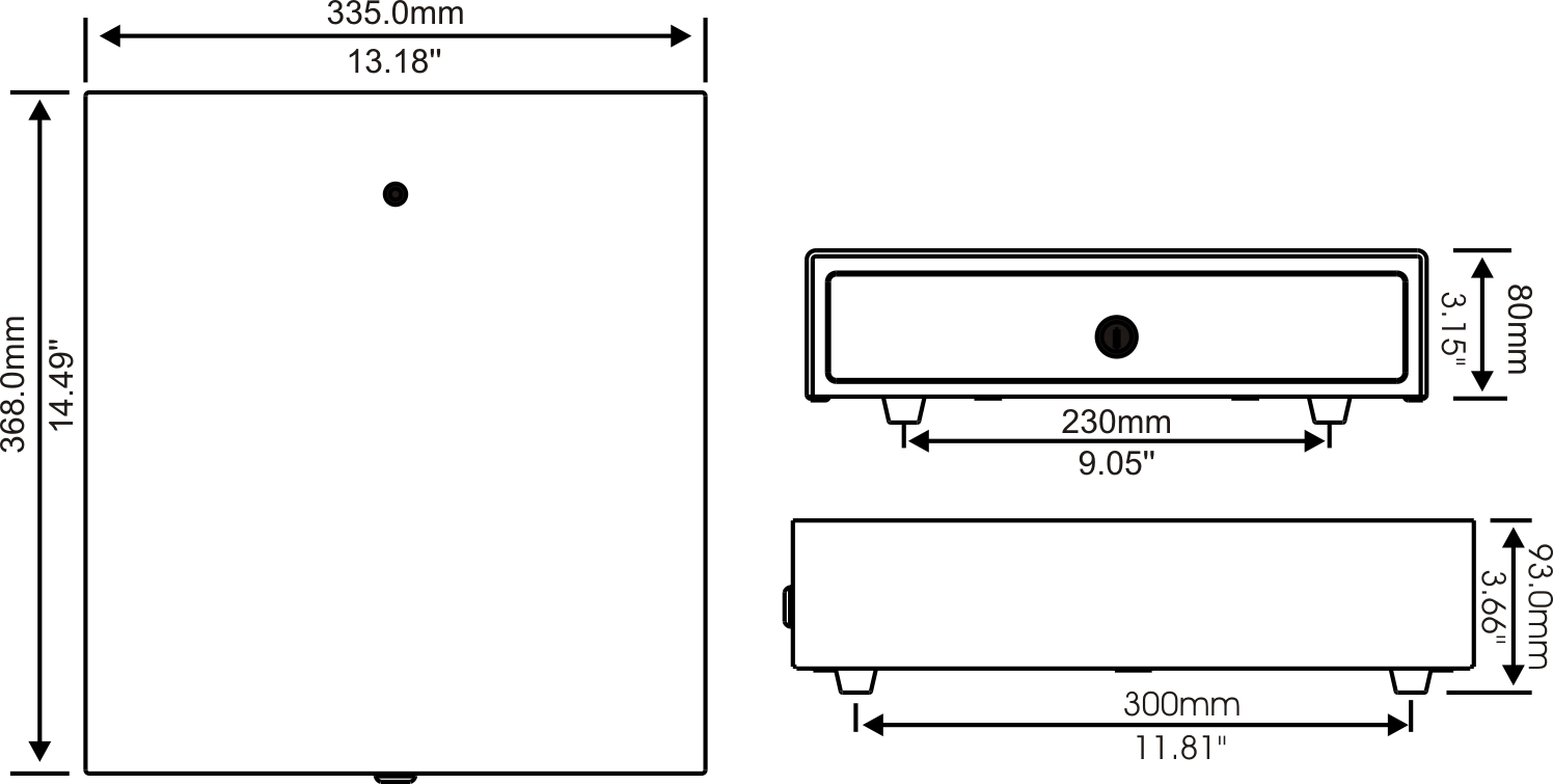 • CW1X: 335mm(W)*368mm(L)*80mm(H)